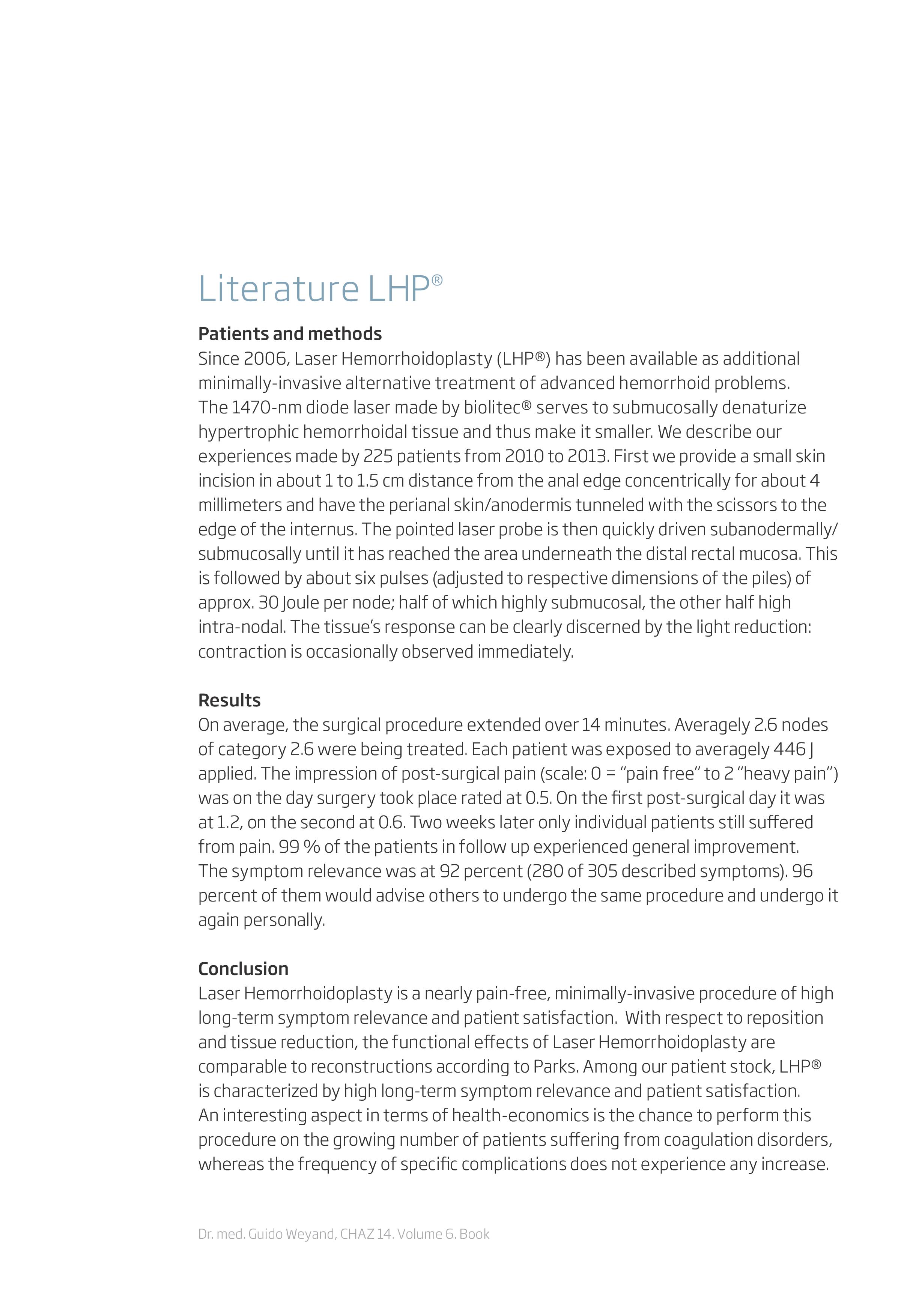 1.Doppler-guided hemorrhoidal dearterialization with laser (HeLP): a prospective analysis of data from a multicenter trial
